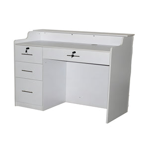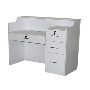 The “Delamere” Salon Reception Desk combines style and practicality, providing a chic and functional workspace for your salon. Featuring a sleek white and black color scheme, this desk adds a modern touch to your salon’s entrance while offering convenient storage and versatility. It is designed to be used as either a sit-down or stand-behind desk, making it adaptable to your needs.