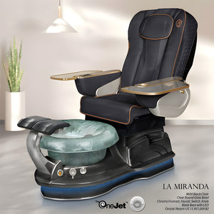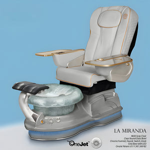Introducing the versatile La Miranda Spa Unit. This luxurious pedicure spa combines elegant design with advanced functionality, featuring signature handcrafted glass bowl, durable acrylic base, and the innovative Onejet Technology.