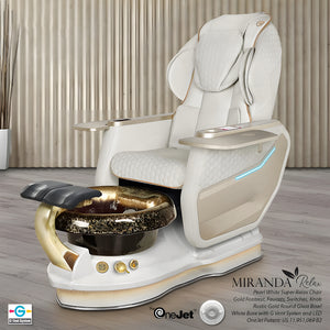 Also, the Miranda Relax Spa comes with Super 2 or New Super 3 Massage Chairs. Indulge in the ultimate relaxation experience with our cutting-edge Super SPA Massage Chair with Gold Edging. Available in premium PU Leather, this chair boasts innovative features like: