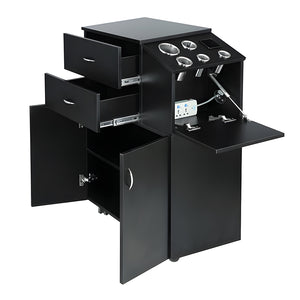 STYLING STATION VANITY WITH TWO DRAWERS AND APPLIANCE HOLDERS WITH CLIPPER POCKET NO POWER SOCKET INCLUDED DIMENSIONS 24″ (W) X 16.5″ (D) X 40″ (H)