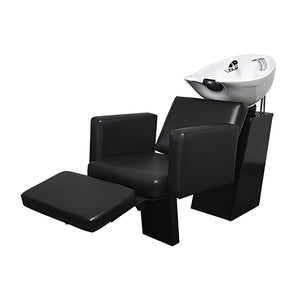 5234 Cosmo Backwash/Sidewash Unit offers the perfect combination of elegance and modern European design. This shampoo unit is made in the U.S.A. and features an extra-large tilting Italian porcelain shampoo bowl that is available in either black or white. The Cosmo backwash sets itself apart from the pack because the extra-wide seat sits atop a sliding chassis making it possible for clients of all sizes to fit comfortably.