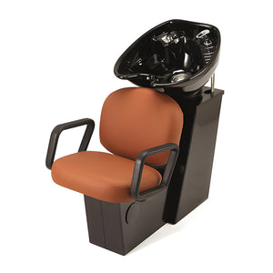Large deep porcelain backwash bowl with European single handle faucet Made in USA Bowl, faucet made in Italy 25 colours on the chair Solid plastic arms. Sturdy black steel body. Porcelain adjustable tilt bowl. The price mentioned is for a white Italian porcelain shampoo bowl (a Black bowl is $100 extra). Overall Width 26″ Length 45″ Height 38″ with bowl level Seat 21-3/4″ Cabinet 12-1/4″ Deep Bowl Depth 10″
