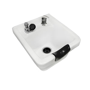 The 8000 square porcelain sidewash bowl comes with a 570 faucet, shampoo hose, vacuum breaker, drain assembly, hair strainer, and mounting bracket. Measures 19″W x 20″D x 10″H. Bowl does not tilt. UPC certified. Complies w/ ASME A112.19.2 & CSA B45.1-2013.