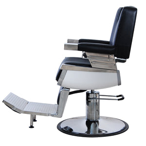 The Admiral Professional Barber Chair is a beautiful example of what a classic barber chair should look like, clean lines, detailed upholstery and eye popping chrome. This heavy-duty barber chair features a chrome side lever that controls the reclining mechanism as well as raises the footrest in union. The platform footrest is accompanied with a padded and upholstered calf rest and tilting footrest that offers supreme client comfort when fully reclined. The Omni Barber Chair will give your barber shop a classic look and will last for many years to come. Don’t be fooled by inferior imitations