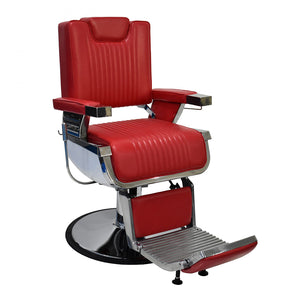 This classic heavy-duty professional reclining barber chair is the ultimate comfort machine. Great for all types of clients, this chair is designed with a deeper seat and a footrest that raises as chair is reclined. It is sure to improve the appearance of any salon or barber studio.