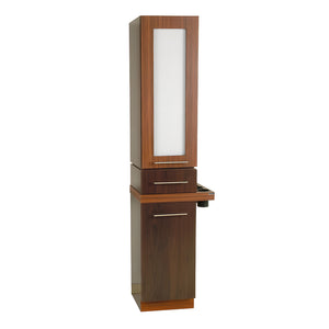 The Alta A-Tall Styling Vanity adds a contemporary and functional touch to your salon, offering ample storage and organization for your styling tools and products. With an adjustable shelf behind a full door and a convenient drawer, this vanity ensures your space remains organized. The side tool panels are perfect for keeping hair dryers, curling irons, and other tools within easy reach.