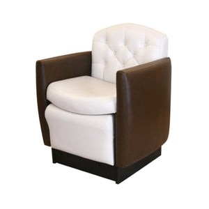 Club Pedicure Ashton Chair features a free footsie bath and quilted detailing.Measures: 28”W x 28”D x 22”H x 37”HFloor to seat: 22”Between the arms: 22”No electrician neededDoubles as a dryer chairFootsie...