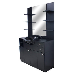 The Chicago Professional barber and styling station is the perfect blend of style and functionality.Porcelain sink includes faucet sprayer hose drain.Vacuum breaker $89 extraHair Trap $60 extraProduct needs assembly Approximate Dimensions.Total...