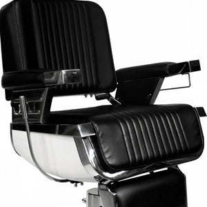 This retro inspired barber chair has much to offer. It features spacious seating with extra thick seat and back cushions offering great comfort for clients. The back is reclinable with an adjustable headrest. To ensure its stability, the chair consists of heavy duty metal and extra large round base to have the chair well balanced.