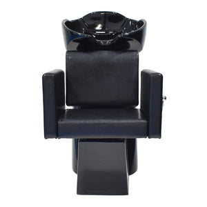 Shampoo Unit with Sliding Chair ,Adjustable Backrest , Tiltable Ceramic Black Faucet spray hose.