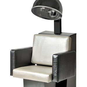 Features: Metal base which is extremely sturdy and durable Made in the U.S.A Available in 35 Custom Vinyl Colors (See Chart) Extra Wide Seat for Client Comfort Modern European Design Measurements: Inside of Arms: 21” Outside of Arms 27”