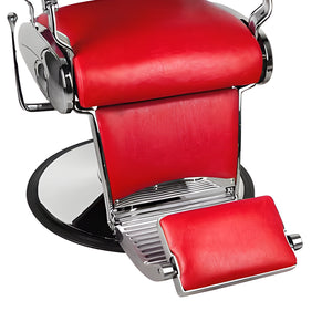 Jaguar is a full-featured barber chair that promises to the be the industry’s best value in barbering. Each Jaguar Barber Chair features an all-metal frame, arms, footrest, and base with a bright polished finish, gas-cylinder controlled reclining back, adjustable-removable headrest, kick-out footrest, and roll-over calf pad for shaves. The Jaguar arms and kick-out footrest work in -sync with the reclining back; recline lever on right as shown. This barber chair is very accommodating as it measures 20″ between the arms, 17″ high back cushion, plus 4″ headrest. The Jaguar Barber Chair is also very durable and it features a two year warranty on the hydraulic base and gas cylinder.