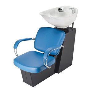 The Pibbs 5239 Latina Backwash/Sidewash Unit is Made in America and designed with client comfort and durability in mind. This backwash unit features an adjustable sliding seat and tilting Italian porcelain bowl to accommodate clients of various heights. The Pibbs 5239 Latina Backwash comes outfitted with triple dipped chrome arms, and upholstered armrests and is available in 40 custom colors. This backwash unit comes complete with all necessary hardware including a single handle Italian fixture. This professional backwash unit is part of the Latina collection by Pibbs which includes matching Styling, Dryer and Reception Chairs.