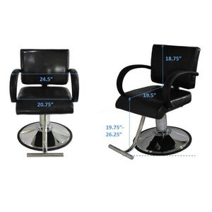 The New Layla Styling Chair features a stylish design with steel back support and curved armrests. 1 Year Warranty on the Hydraulics Inside Arm: 20.75” Outside Arm: 24.5” Seat Depth: 19.5”...
