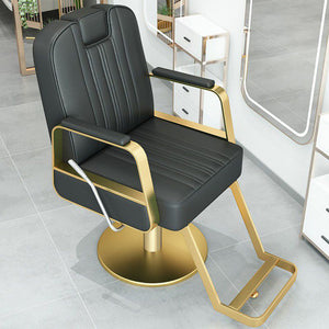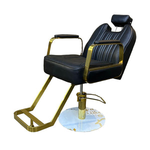 Combining comfort and style, our multi-purpose chair is a perfect blend of functionality and elegance. Featuring gold stainless steel armrests, a gold chrome base, and black vinyl, it stands out for its sophisticated appearance. The sleek design adds a decorative touch that complements the ambiance of any beauty salon, spa, or barbershop. The chair offers various reclining levels, making it perfect for accommodating clients during facial waxing, eyebrow threading, or as a shampoo chair at wet stations. This chair comes with a 1-year manufacturer’s warranty on the hydraulic.
