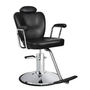The Milano All-Purpose Chair is one of our most elegant and comfortable reclining chairs. Featuring an adjustable removable headrest. Its reclining back adds another element of functionality and will work great in any salon. Perfect for hair styling, make-up, eye brows, lashes. Also includes a polished chrome hydraulic base, chrome dual-arm footrest. This all-purpose styling chair has 1 year on the hydraulic pump. From the lowest (21″) to the highest (29″).