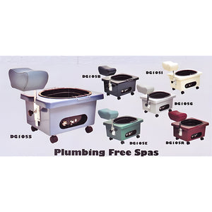 DG105 Pedi N Go Footsie Mobile Pedi Spa Made in the USA. Mobile Pedi-Carts featuring the footsie bath tub with disposable liners. Made of sturdy fiberglass that is impervious to any water damage & allows us to offer them in 6 different colors; black, emerald green, ivory, rusty brown, grey & star blue.