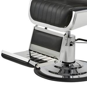 Overall Height: 47″ (Hydraulic Pump Fully Raised) Chrome heavy duty steel construction Gas-controlled reclining mechanism for smooth positioning Upholstered Armrests Inset Padded Adjustable Headrest Kick-out calf pad and footrest Maximum Weight: 500 Pounds Dimensions: 26″W x 36″D x 38″H 2-year warranty on hydraulics Made in USA Available.