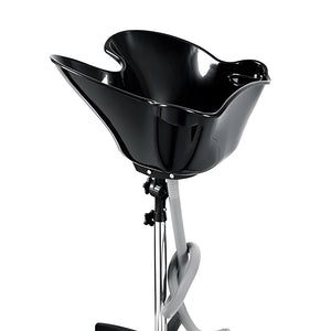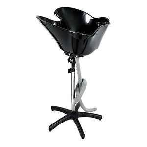 This portable shampoo unit comes with a plastic shampoo bowl, one simple strainer with hose. No tap, sprayer or vacuum breaker is included, neither can they be mounted to the bowl. The angle and the height of the bowl are adjustable.
