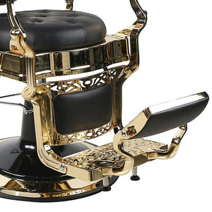 This handsome chair features old world looks with modern comfort. We have taken inspiration from a variety of historical antique barber chairs, and applied those looks on to the Carmen Barber Chair. This chair features a polished metal finished in a classical gold colour. Moreover, upholstered with a soft matte black leatherette, it gives an aura of sophistication and comfort. This chair would be an excellent fit into any fine Barbershop.