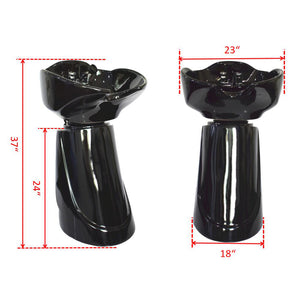 FEATURES: DIMENSIONS: • Elegant Black Ceramic Bowl • Stain Resistant and Easy to Clean • Sturdy Fiberglass Base • Individual Space Saving Unit • Large Opening for Plumbing • Shampoo Bowl Made Of High Quality Ceramic with a Touch of Super glossy Finish • Wide Angle Bowl – Fully Adjustable • FREE Neck Cushion ($25.99 Value) • Overall: 22.5″ W x 24″ L x 40″ H • Bowl: 23″ W x 21″ L x 12″ D • Rear Removable Access Door: 8″ W x 11″ H – INCLUDES – • Chrome Faucet • Sprayer Hose • Drain Assembly