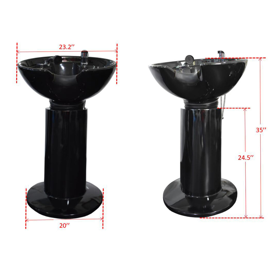 FEATURES: DIMENSIONS: • Elegant Black Ceramic Bowl • Stain Resistant and Easy to Clean • Sturdy Fiberglass Base • Individual Space Saving Unit • Large Opening for Plumbing • Wide tiltable bowl • FREE Neck Cushion ($25.99 Value) • Bowl: 23″ W x 21″ L x 12″ D • Rear Removable Access Door