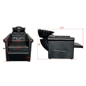 PORCELAIN TILTING BOWL WITH FAUCET SPRAY HOSE DRAIN COMFORTABLE CHAIR WITH FOOTREST 1 YEAR WARRANTY ON THE PLUMBING PARTS ONLY Vacuum breaker optional $99 Hair Trap $60