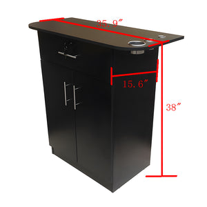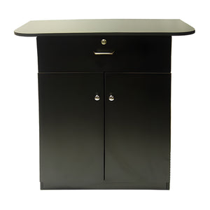 STYLING STATION PREFERRED BY BARBERS MADE IN CANADA I DRAWER, 1 CUPBOARD 38″ H x 36″ W x 18″ D COLORS AVAILABLE BLACK, WHITE, OTHER LAMINATE COLORS(UPCHARGE)LOCK $30 EXTRA