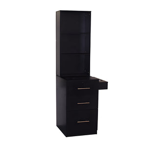 The Vega Tower is a modern styling station that is great for storage. It features a locking drawer and 2 large storage drawers. With some open storage space. Our latest Tower station can meet all the needs. For the hairdryer and curling iron, this station provides 3 rings to arrange this hairdressing tool on the side. Features Designed with stability and safety as its priority. Assembly required